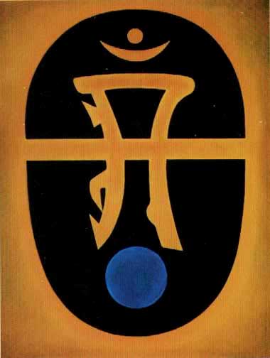 in 1966, OM is shown in its Tibetan form and as overshadowing,