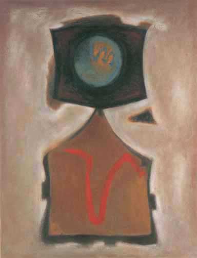 In ancient times the Oracle was consulted as a source of inspiration, revelation or prophecy. In the Greek myth, Oedipus consulted the Oracle at Thebes who told him he would murder his father and marry his mother, which indeed, all unknowingly, he did. The tradition of State Oracle persists to the present day, notably in Tibet. The Oracle is the prophet or soothsayer, one who knows what others do not know and who is thus consulted about future events. (Painted between 1964-1984) |
